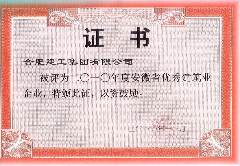 2010年度安徽省優(yōu)秀建筑業(yè)企業(yè)