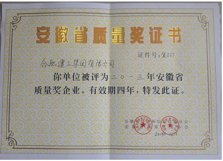 2013年度安徽省質量獎