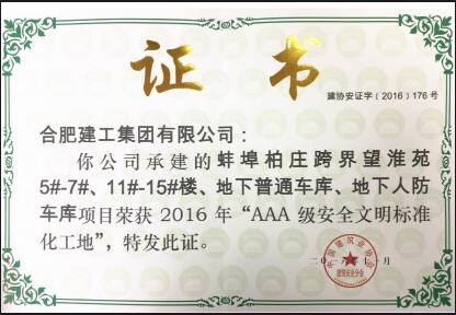 2016AAA安全文明標準化工地(蚌埠柏莊跨界望淮苑項目)